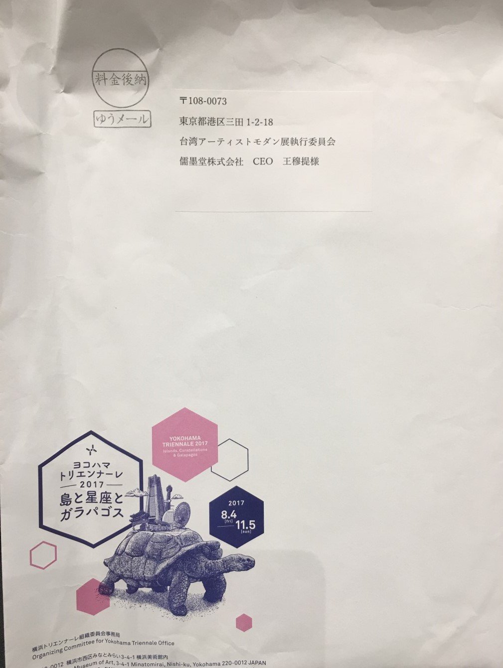 先前因為於日本策展台灣與日本國際交流展,橫濱美術館與日本財閥諸如三菱等為當時的主辦方,寄給我內覽會的招待狀。