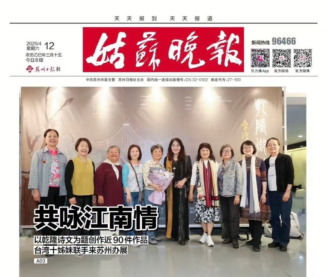 身為「台灣十秀雅集」成員之一的書畫家連瑞芬,與十秀成員於2025/4/12在蘇州彬龍美術館隆重舉辦【乾隆御題詩詠】書法展暨開幕式,以別致的主題,各具面目的精彩書畫作品,獲得蘇州各界及媒體的關注報導及祝賀!