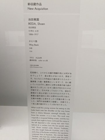2022 年新購入的《回歸之路》是 1915 年(大正 4 年)第 9 次文天時在一間屋子裡只收集了美畫的所謂“美畫室”中展出的作品。 承接上一期,這次我們要為大家介紹一些女畫家的作品以及本次的“Kaeriji”,以及作為美人畫和芭蕉園深耕的藝術家們的作品。