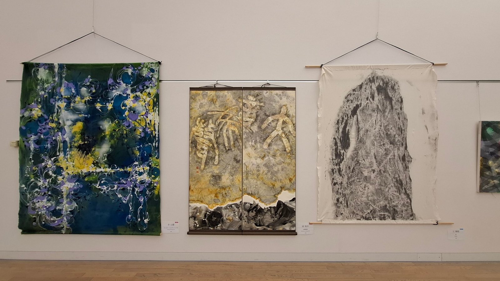 【台灣藝術家展區:從左至右分別為李元慶、連瑞芬、王穆提(日本NAU21世紀美術連立展成員)】
